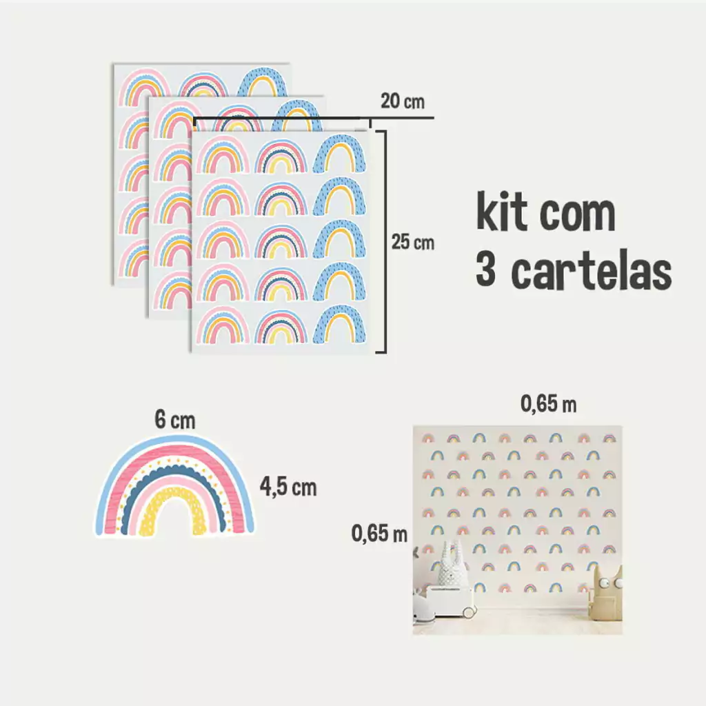 O kit contém 3 folhas, cobrem em média até 1,3m quadrados