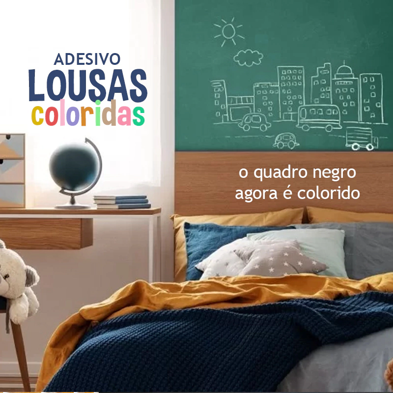 O adesivo de lousa é perfeito para auxiliar a alfabetização e a criatividade da criança. Pode ser aplicado em quarto infantil, brinquedoteca e área de recreação. A novidade são as cores, agora o quadro negro não precisa ser só preto. Escolha a cor que mais combina com o seu ambiente.