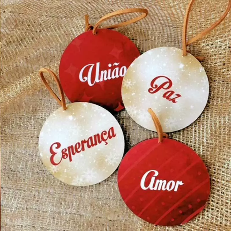 As bolinhas decorativas com palavras que representam tão bem essa época do ano são perfeitas.