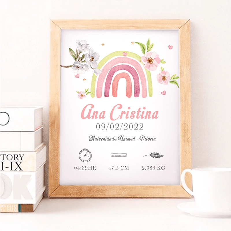 Torne o seu quadro ainda mais especial! Com a opção de personalização, você pode escolher não apenas o tamanho e a moldura, mas também o design que melhor representa o estilo do ambiente que deseja decorar. Crie uma peça única e original que traduz seu carinho e criatividade. Podendo personalizar e acrescentar com o nome da criança.