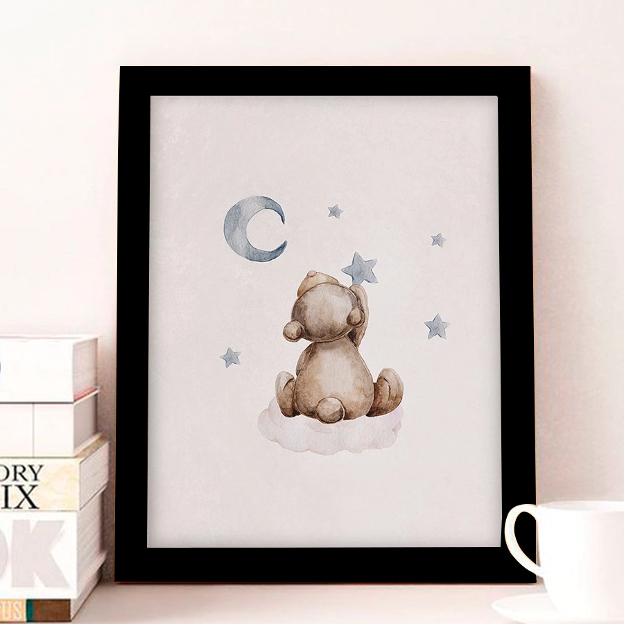 Impressão em alta resolução em vinil e aplicado em placa de MDF que garante a qualidade dos detalhes de cada quadrinho e dispensa o uso de vidro, garantindo a segurança do seu bebê. Devido a sua composição, possui alta resistência à oxidação, umidade e a degradação, o que justifica a durabilidade do produto.