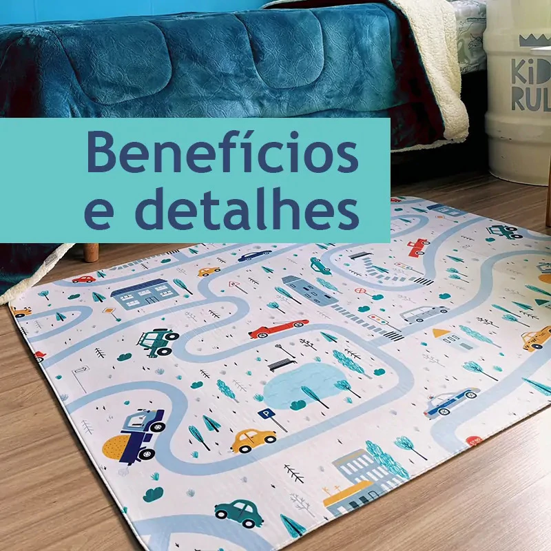 Durabilidade: Sua resistência é uma de suas principais características, garantindo que o tapete acompanhe o crescimento e as brincadeiras do seu filho por muito tempo.